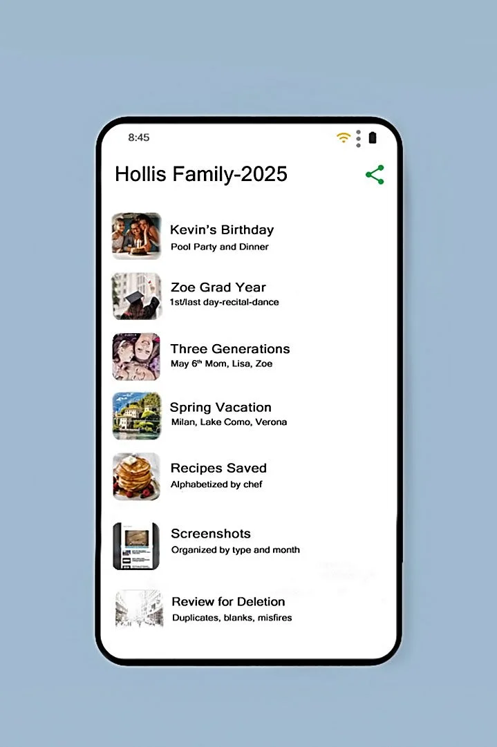 “I’ve had clients ask for a favorite photo from as far back as 2005. I can find it in five minutes. Everyone with thousands of phone photos should be able to do the same.”